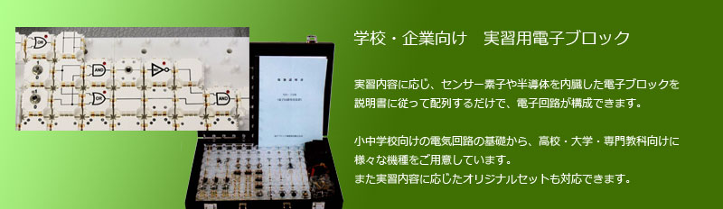 2023年6月に保守対応製品を設定し一部製品の価格を据え置きましたが、その後該当製品へのご注文を多数いただき 素材在庫が無くなってしまいました。 継続使用のお客様ニーズも多く、製造中止は難しいと判断し、新規に素材の調達を行っておりますが、 入手価格が大幅に高騰しております。 大変恐縮ですが、標準価格を改定させていただきましたのでご了承ください。 ** 該当機種 YD-10 電子回路応用実験装置 ** 弊社製品は、殆どの製品が受注生産となっており、ご興味をお持ちになったユーザー様にとっては、 お試し的に導入を検討したくてもどこで購入できるのか?納期は?支払い方法は? など疑問を多く感じられている事と承知しています。 そこで今回、価格帯の安価な製品に限定されますが、在庫を用意しECサイトにて1セットからご購入戴けるように 準備を進めております。 小中学校レベルの電気・電子入門編では接点スプリングをニッケルメッキ品として価格を押さえています。 高校〜大学、専門学校向けシステムでは接点スプリングを金メッキ品とし、測定や実験の安定性に重点を置いています。 掲載が始まったサイトは以下となります。 モノタロウ https://www.monotaro.com/ アズワン https://www.as-1.co.jp/ それぞれのページの検索窓に「電子ブロック」又は「電子ブロック機器製造」などと入力していただくと、 ヒットした商品のページが現れます。 短納期で出荷できるよう準備を進めておりますので宜しくお願いいたします。 創業間もない頃より50余年に渡り名古屋市東区にて本社業務を行ってまいりましたが、 業務を効率化すべく本社機能を工場へ集約移転いたしました。 【新住所】 〒486-0937 愛知県春日井市細木町2丁目40番地 【電話】 0568-33-6362 【Fax 】 0568-29-5033 【e-mail】 変更はございません 【2023年版】の会社案内(全16ページ)がダウンロードできます 製品化から年数経過に伴い、使用部品の廃番などで多くの製品の継続生産が困難になってきています。 代替品の入手が難しい製品については、現行ユーザー様に限定した保守対応とさせていただきます。 また、継続販売品については、使用部品単価の値上りに応じ標準価格を改定させていただきましたのでご了承ください。 オリジナル玩具モデルなどについては、社内体制変更に伴い扱いを停止しております。 フェイスブックページも開設しています。 随時情報発信していきますのでFacebookアカウントをお持ちの方はご覧ください。 電気・電子回路の基本から、アナログ回路、ロジック回路の専門分野まで各種実習用製品・教材をご用意しています。 電子機器の設計制作(ハード・組み込みソフト)からパソコンアプリ作成、工場設備などの大規模なものから、 玩具やアイデア商品などの小型のものまで、設計〜開発〜試作〜量産まで対応しています。 また、ユーザー様のご希望に応じて制作する教材やキットなど、柔軟に対応させていただきます。 遠慮なくお問い合わせください。